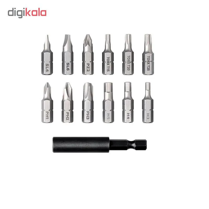 1 عدد پیچ گوشتی برقی راهنما به زبان چینی 1 عدد کابل شارژ جعبه سری ها دارای 12 سری و یک عدد extension |