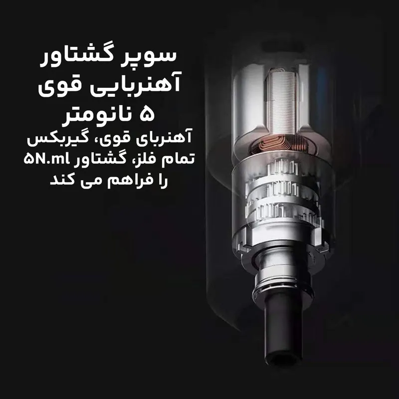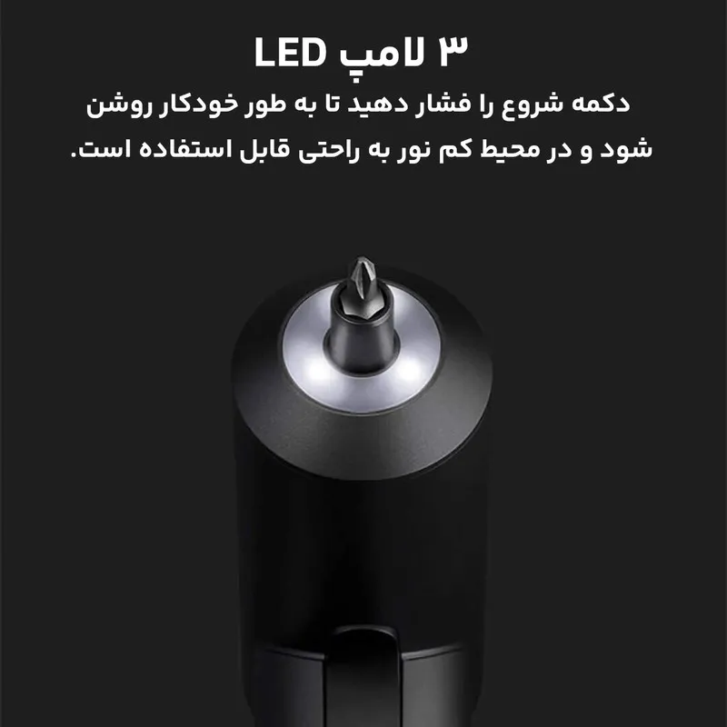 مدت زمان شارژ : 120 تا 180 دقیقه دارای چراغ در جلو برای روشنایی گشتاور 5 نیوتون متر پورت شارژ دستگاه تایپ سی میباشد |